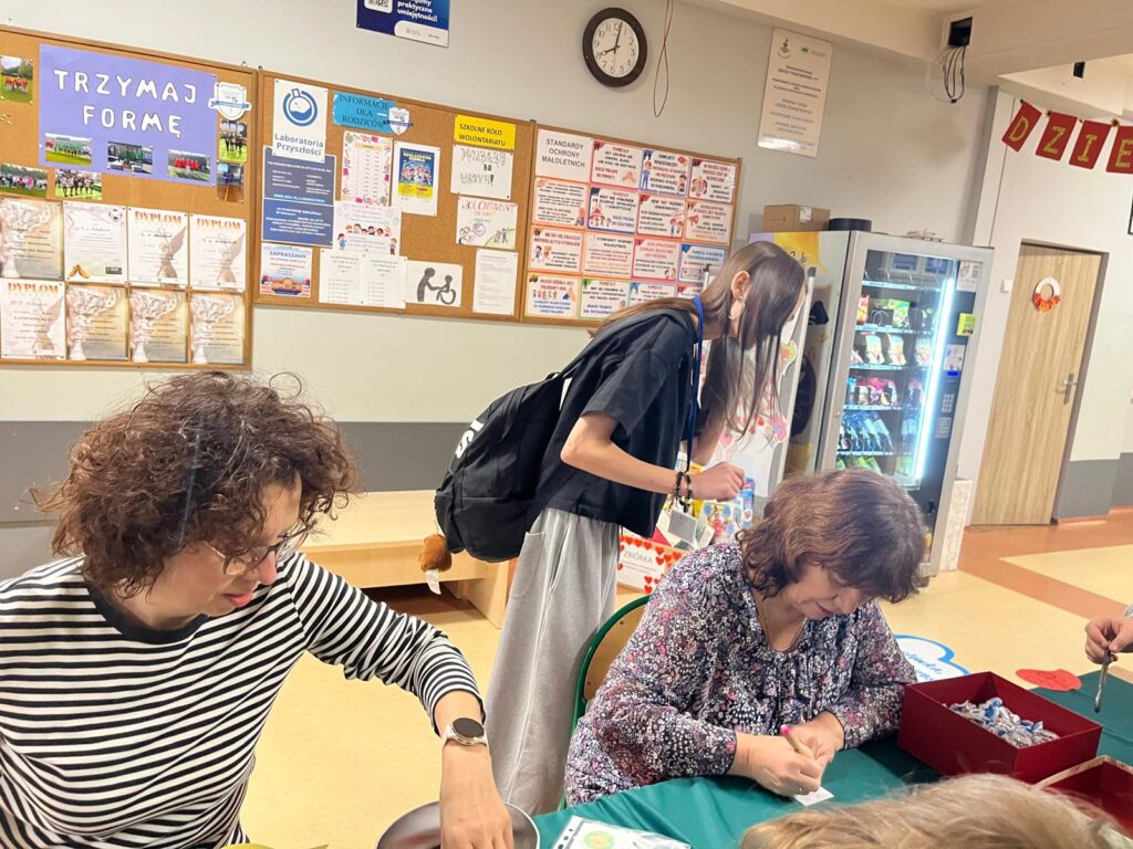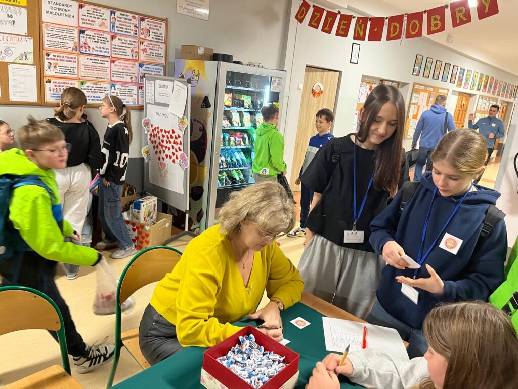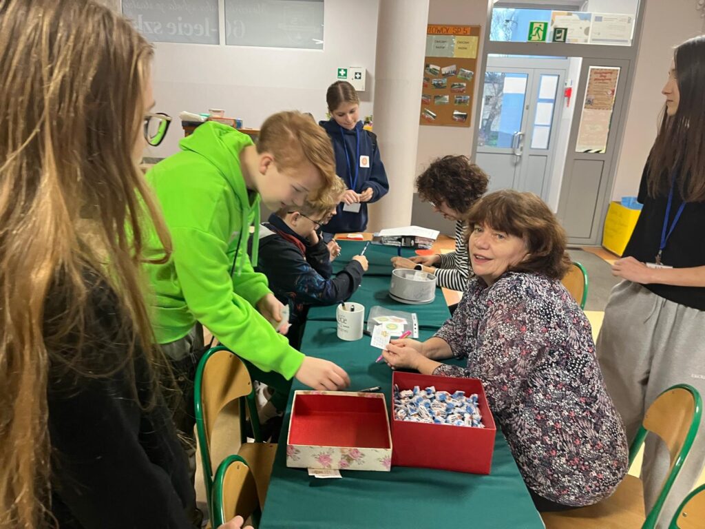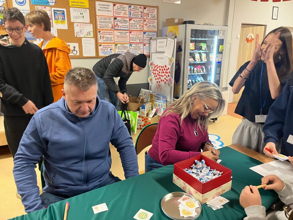 Na terenie szkoły w akcji sprawdzania tabliczki mnożenia wzięli udział: dyrekcja szkoły, pracownicy administracji i obsługi, nauczyciele oraz rodzice. Wszyscy dumnie mogli prezentować odznakę Eksperta Tabliczki Mnożenia. Szkolny koordynator akcji oraz młodzież bardzo wszystkim dziękuje!