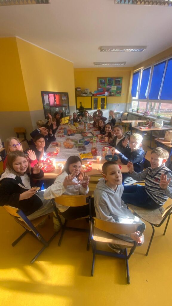 Na stole same smakołyki, były babeczki i ciasteczka pieczone przez dzieciaki, owoce i wiele wiele innych słodkich niespodzianek. Po wcześniejszym losowaniu każdy otrzymał świąteczny prezent.