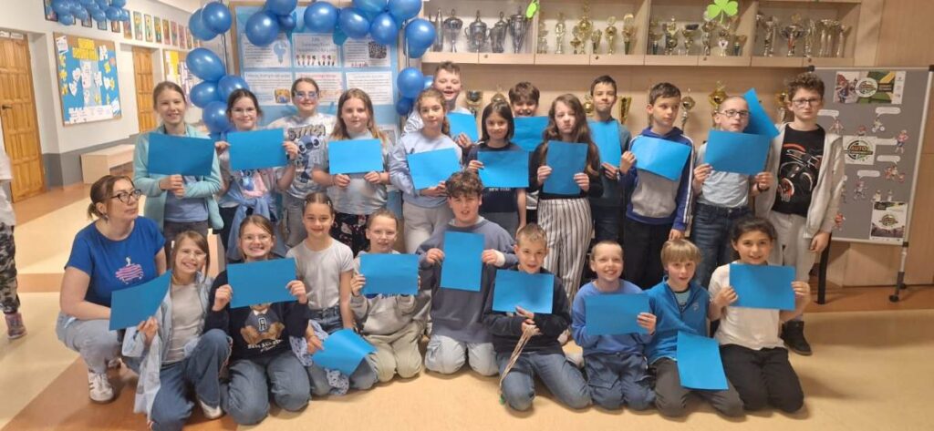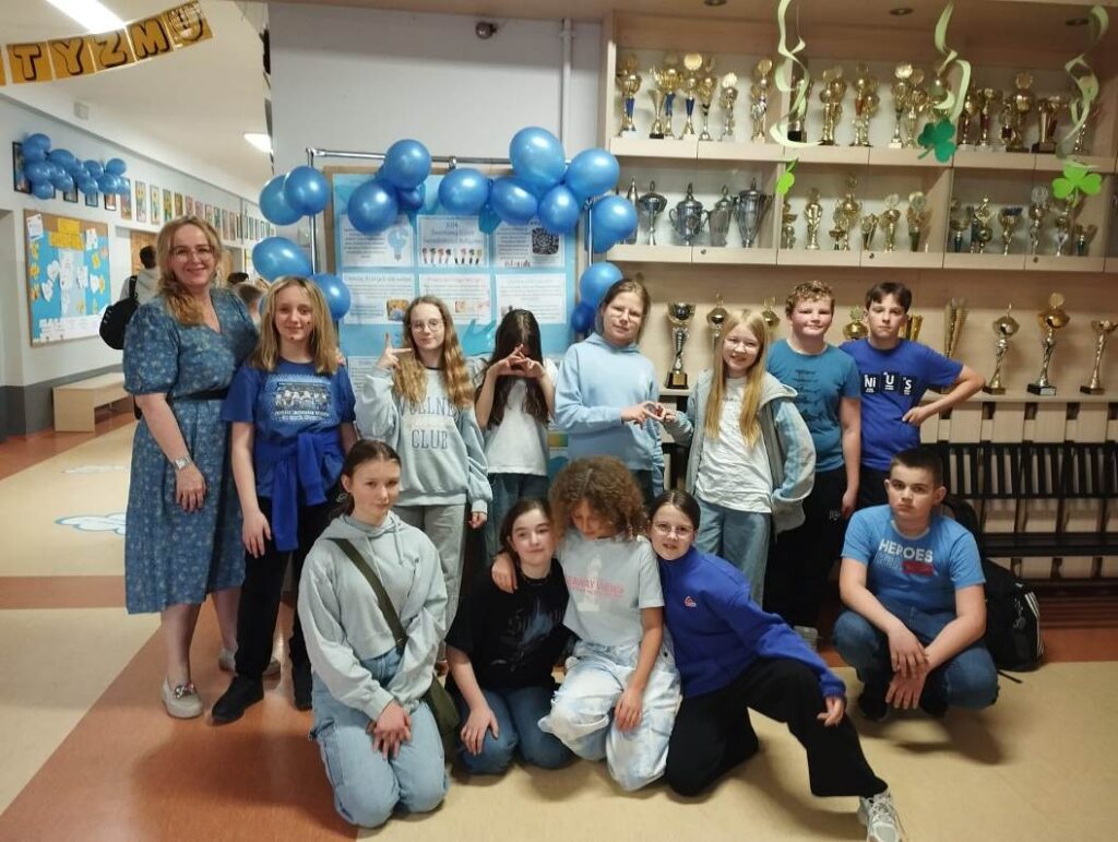 Dodatkowo klasy wykonywały pamiątkowe zdjęcia przy gazetce, a jednym z ważnych momentów był „niebieski dzień”, kiedy uczniowie i nauczyciele przyszli ubrani na niebiesko – kolor symbolizujący solidarność z osobami w spektrum autyzmu.