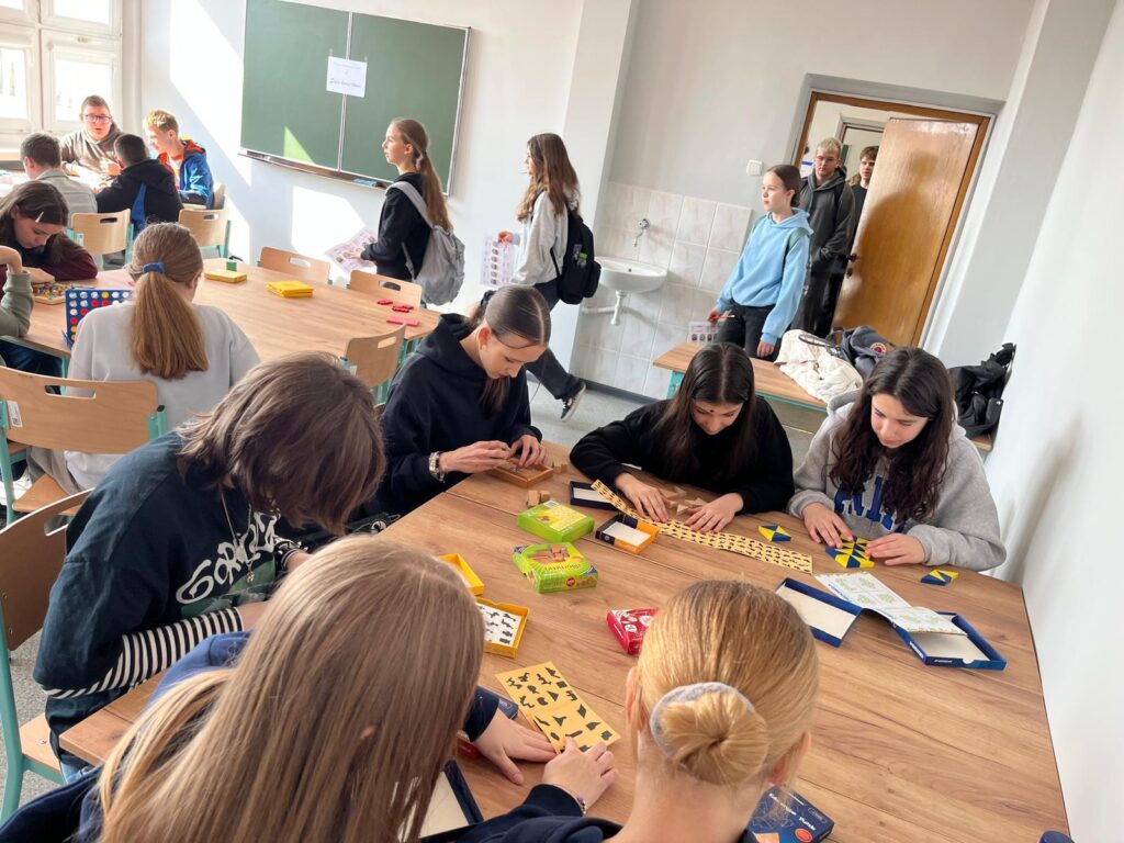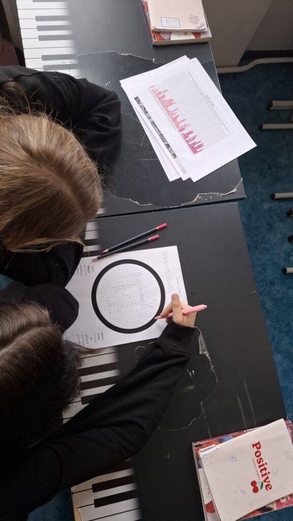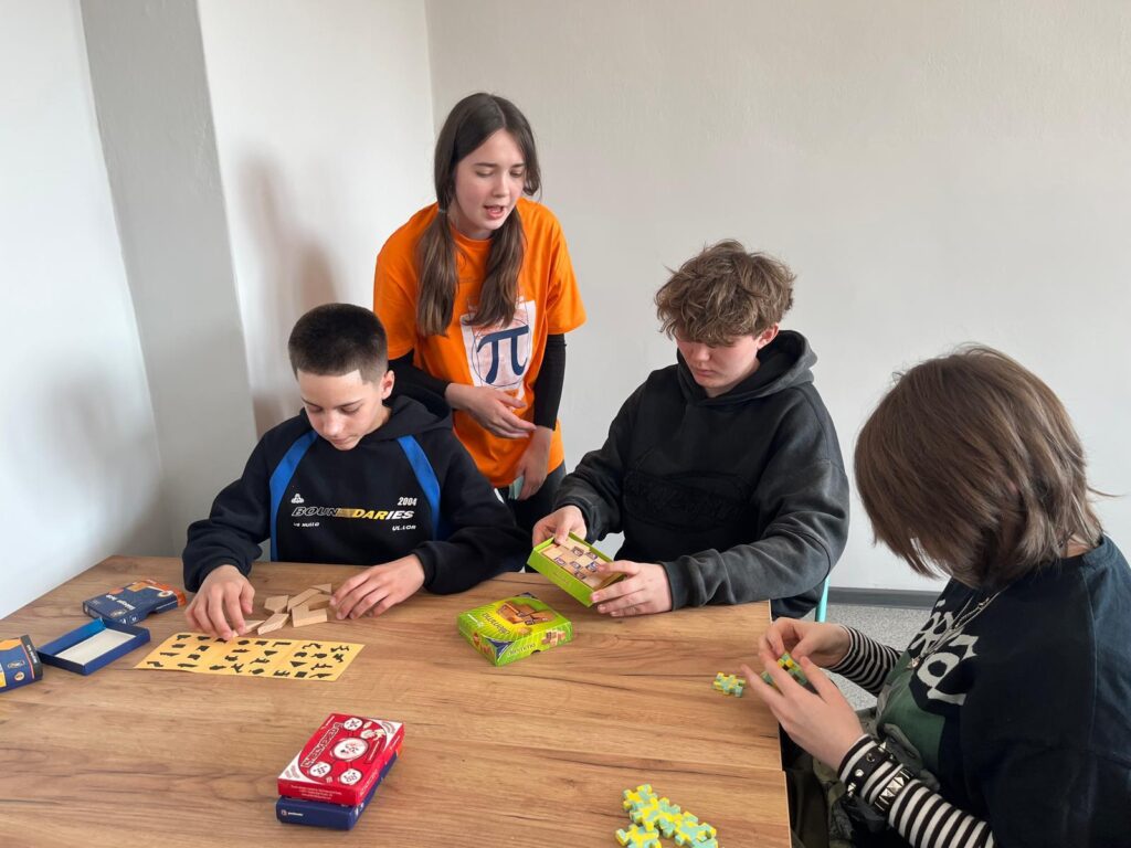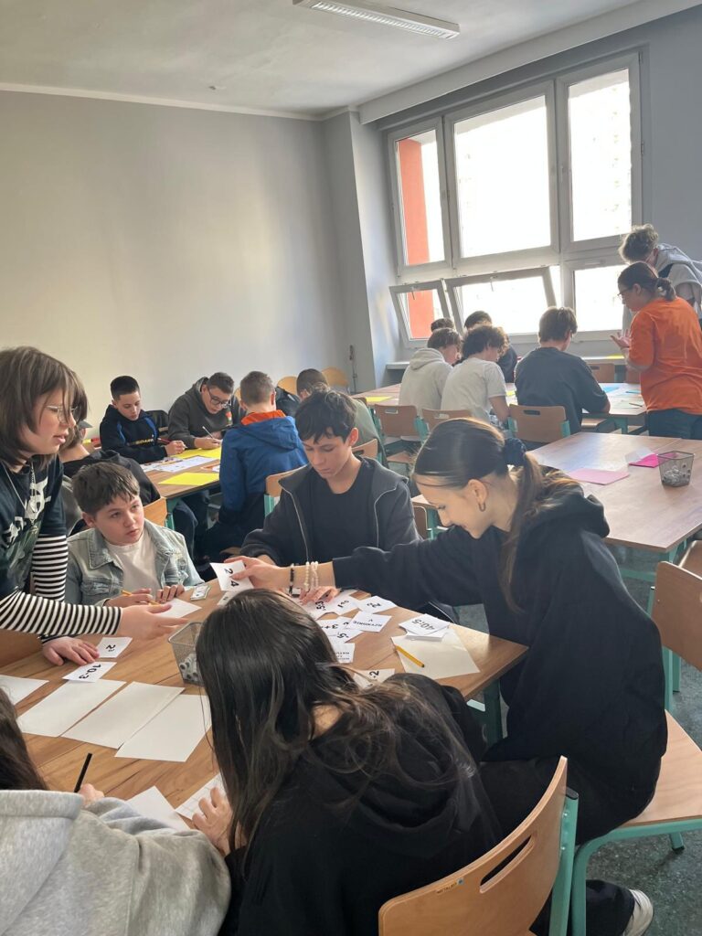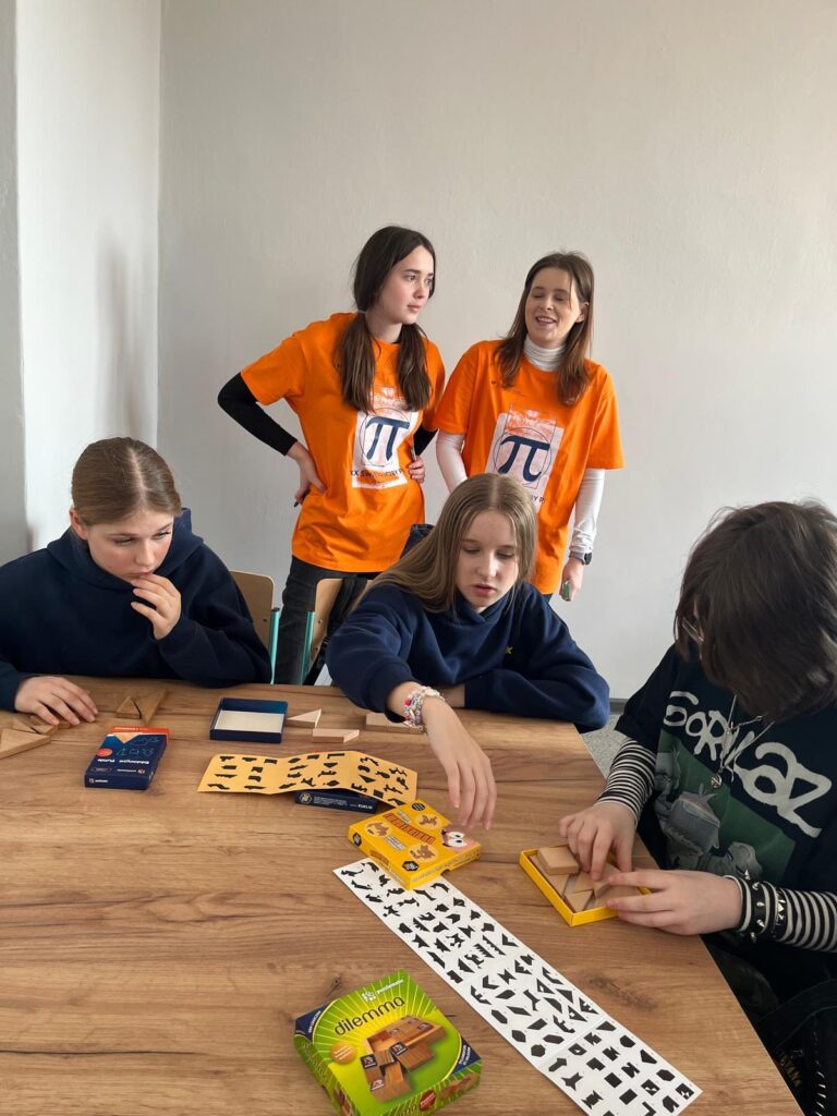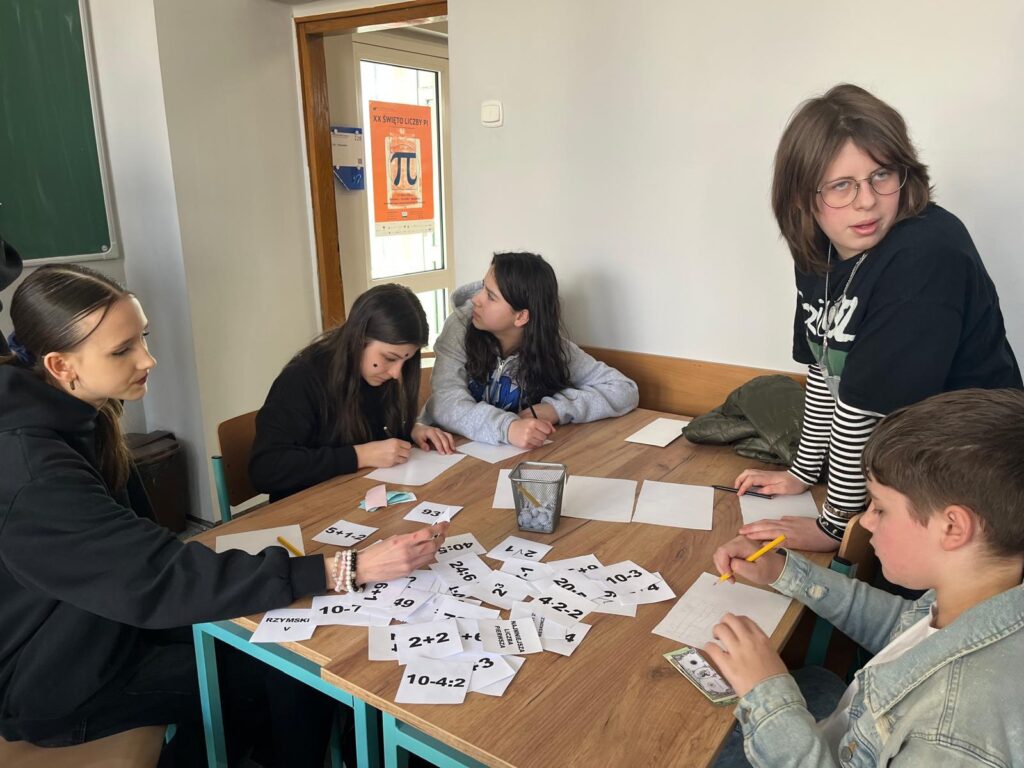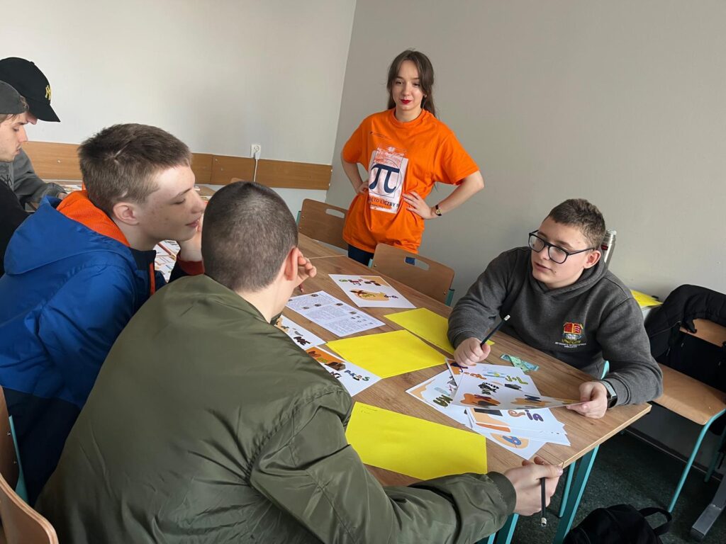 Kolejnym wyzwaniem było rozwiązywanie tematycznych rebusów, co pozwoliło połączyć logikę z gimnastyką umysłu. Dużo emocji dostarczyło również tworzenie nowych, pomysłowych haseł ułożonych z liter napisu „Dzień Liczby Pi”, co udowodniło, że matematyka może być świetną inspiracją do zabaw językowych.