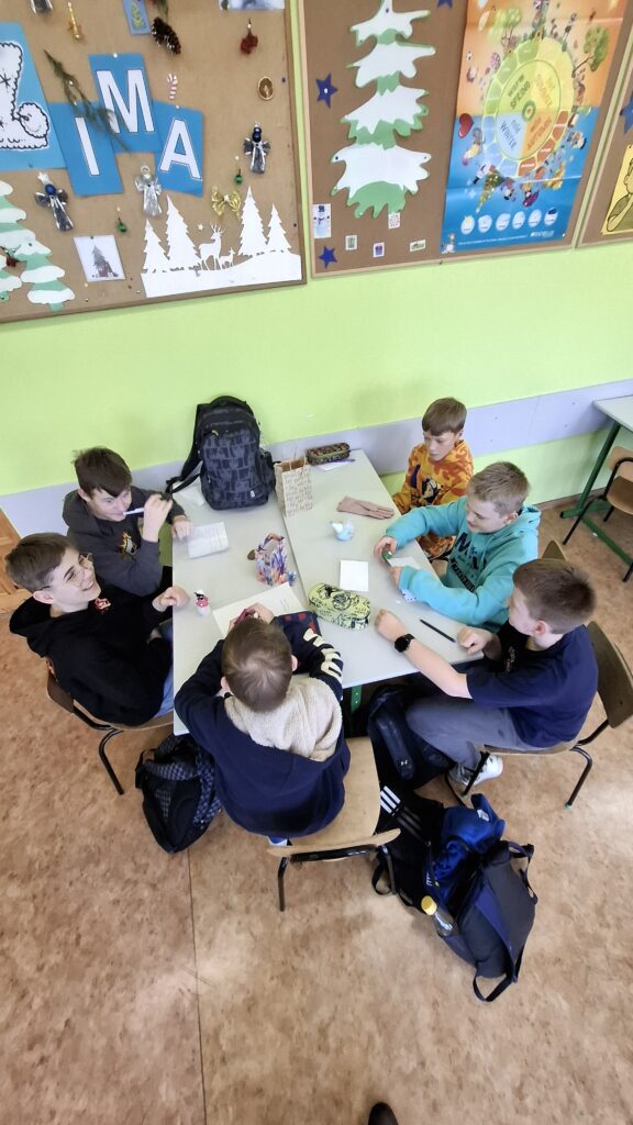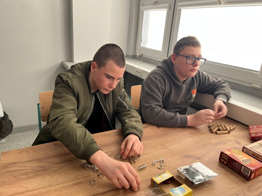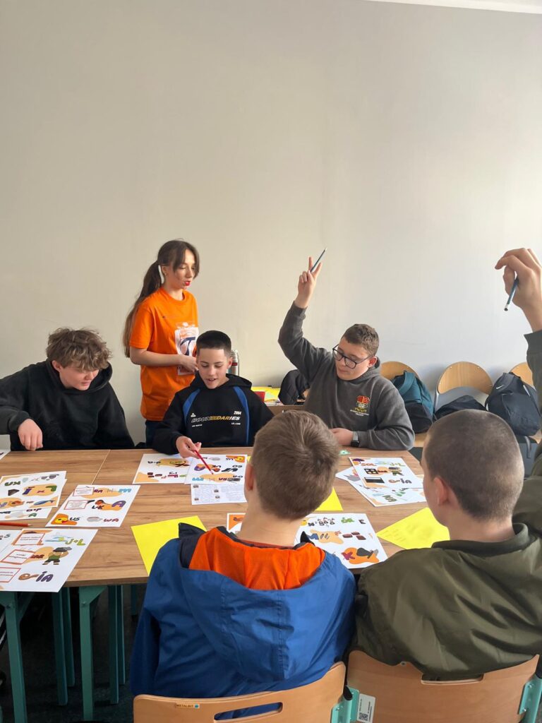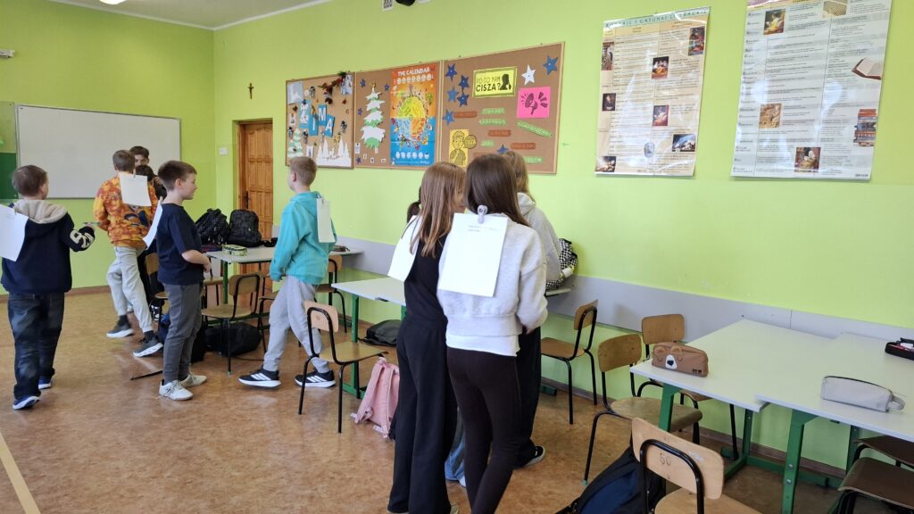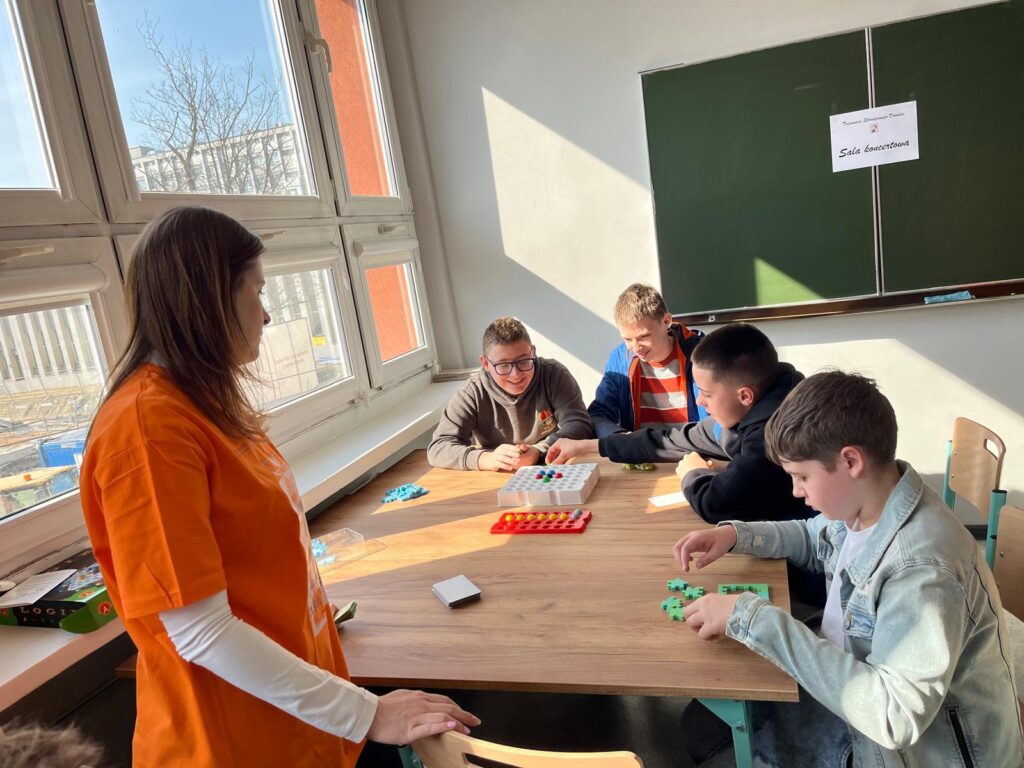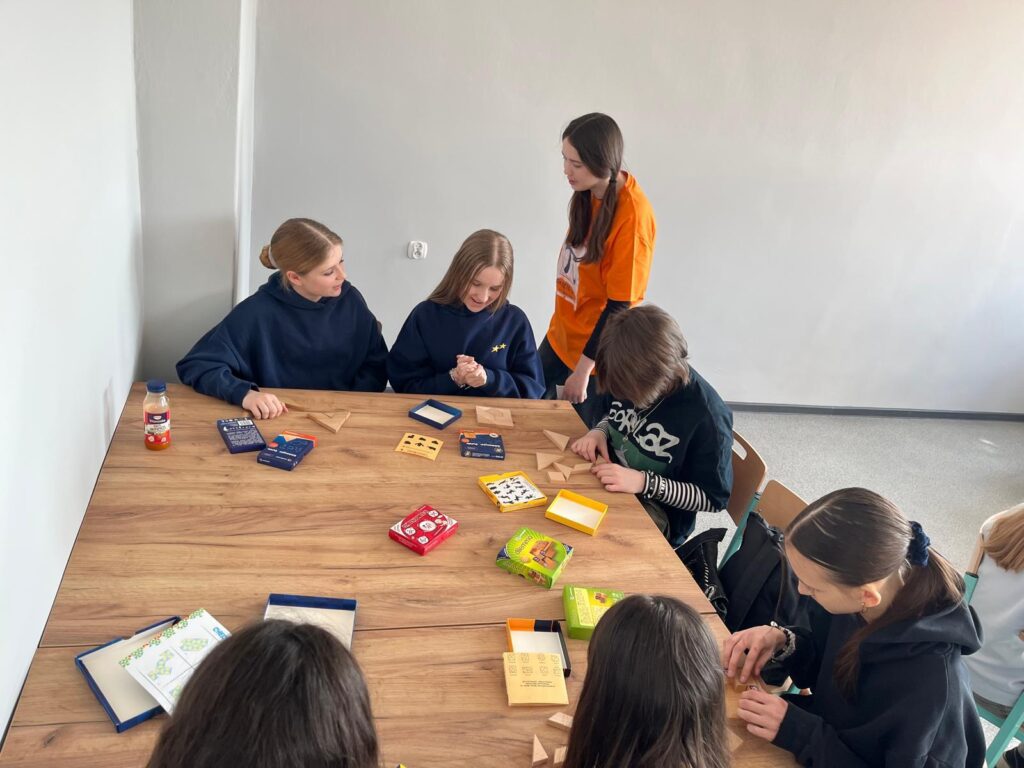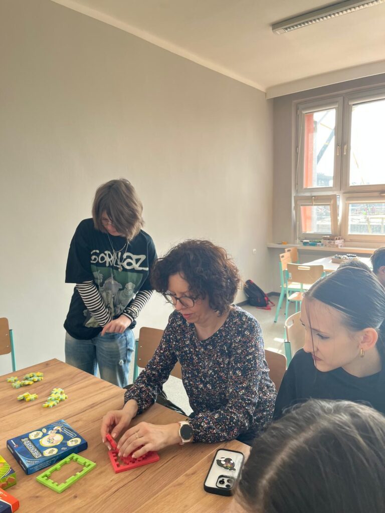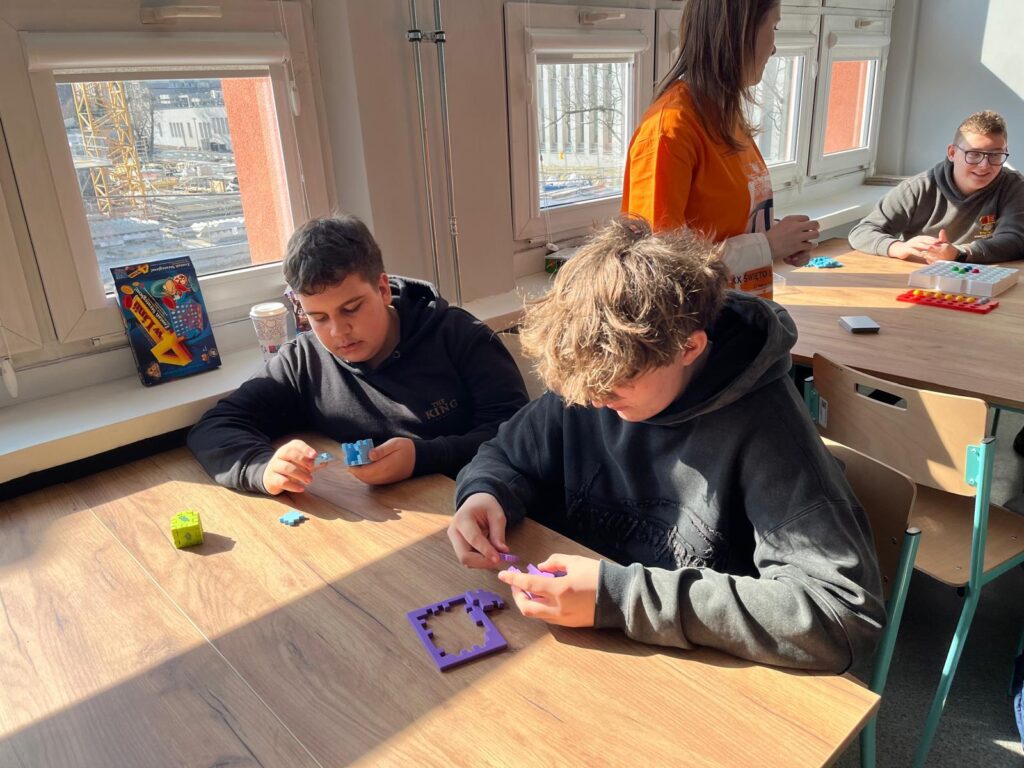 Kolejnym wyzwaniem było rozwiązywanie tematycznych rebusów, co pozwoliło połączyć logikę z gimnastyką umysłu. Dużo emocji dostarczyło również tworzenie nowych, pomysłowych haseł ułożonych z liter napisu „Dzień Liczby Pi”, co udowodniło, że matematyka może być świetną inspiracją do zabaw językowych.