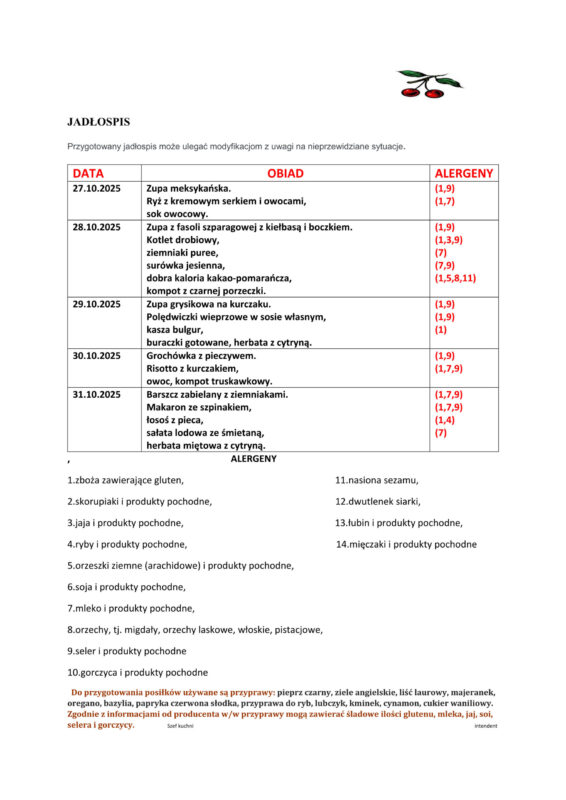 JADŁOSPIS 27.10.25-31.10.25 r.