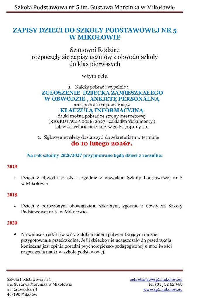 Informacje z życia Szkoły Podstawowej nr 5 w Mikołowie